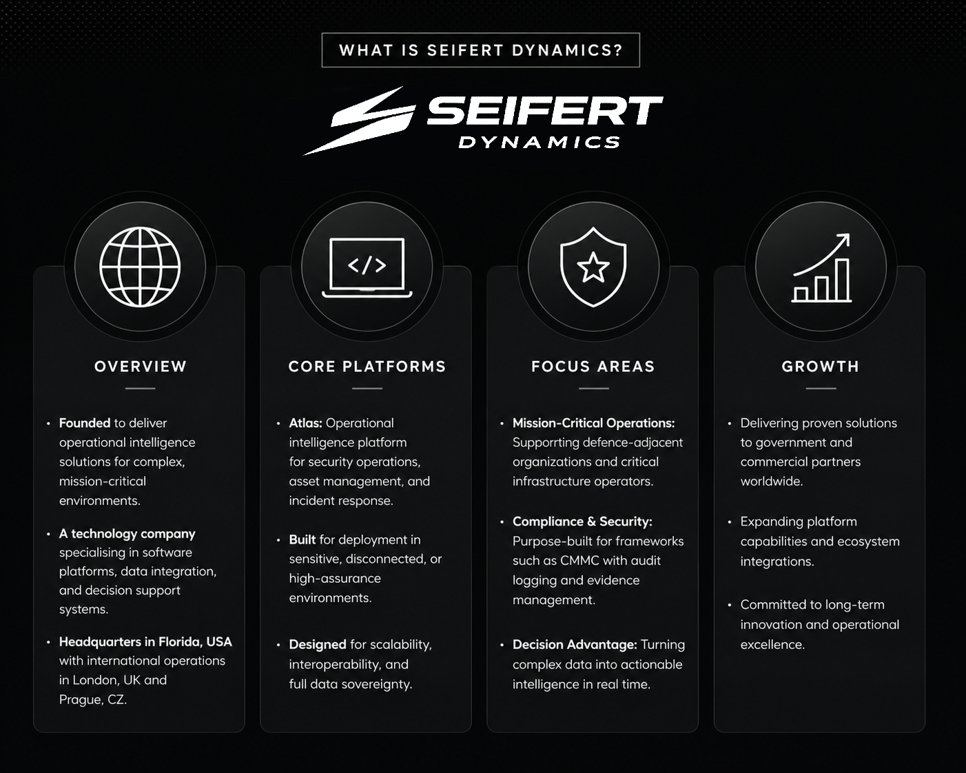 SARASOTA, FL, UNITED STATES, April 27, 2026 /EINPresswire.com/ — Seifert Dynamics today announced the release of its operational intelligence software, designed to provide organizations in complex, high-stakes environments with a unified platform for managing critical data, security workflows, and compliance processes.
